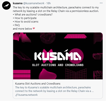 El 7 de abril, el sitio web oficial de la red líder de Polkadot, Kusama.