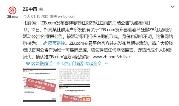 El 11 de enero, ZB (oficial) recibió comentarios de un usuario de la comunidad de que algunos canales desconocidos publicaron información falsa.