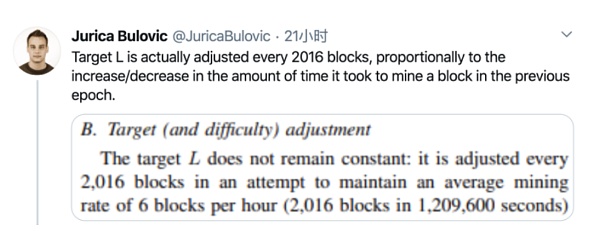 En la práctica, el valor objetivo L se ajusta cada 2016 bloques minados, proporcional al aumento/disminución del tiempo requerido para minar un bloque en el período anterior.