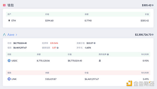 Según datos de DeBank, los 22 millones de USDC hipotecados por Zeus Capital en Aave han sido liquidados por 13,23 millones de USD, y todavía quedan 8,77 millones de USDC en hipoteca, el saldo del préstamo es de 510.000 LINK y el precio de liquidación es de 13,57 USD.