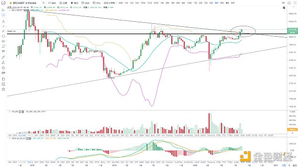 En el nivel semanal de la estructura grande, el precio actual ha superado la línea de supresión a largo plazo de 19800-14000.