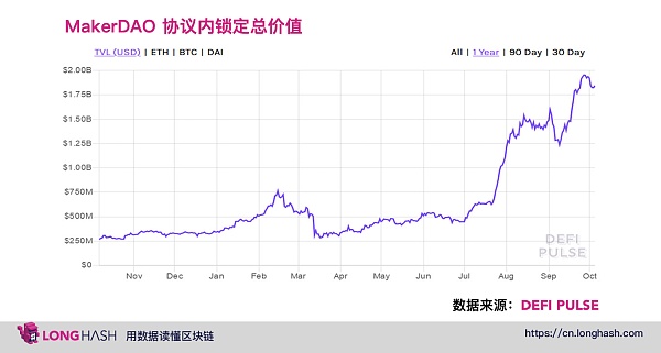 El valor de los activos bloqueados de MakerDAO es cercano a los 2 000 millones de USD: según los datos de Messari, el valor de los activos bloqueados de MakerDAO es cercano a los 2 000 millones de USD. en septiembre. La extracción de liquidez ha impulsado la demanda de Dai, lo que ha permitido que la deuda crezca de menos de $200 millones a más de $900 millones en los últimos meses. [2020/10/1]