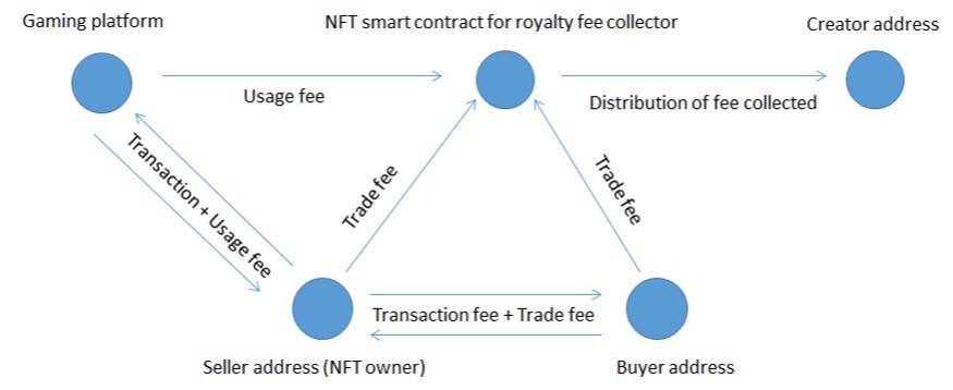 En este modo, los desarrolladores de juegos pueden recaudar una pequeña parte de los fondos de los jugadores leales y también pueden cobrar tarifas o tarifas de uso en proporción a cada transacción de activos digitales (como se muestra en la figura a continuación), para apoyarlos mejor en la creación de juegos. .