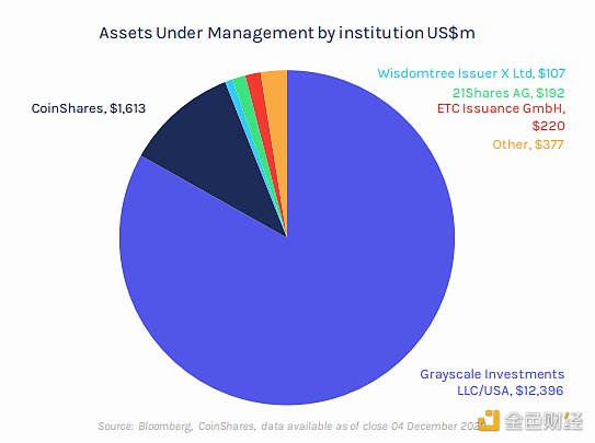 Entre ellos, los activos bajo administración de Grayscale alcanzaron los 12,396 millones de dólares estadounidenses, lo que representa el 82,645%.