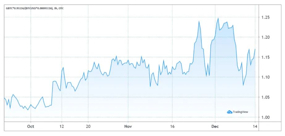 Grayscale Bitcoin Trust Premium Fuente: TradingView y Grayscale