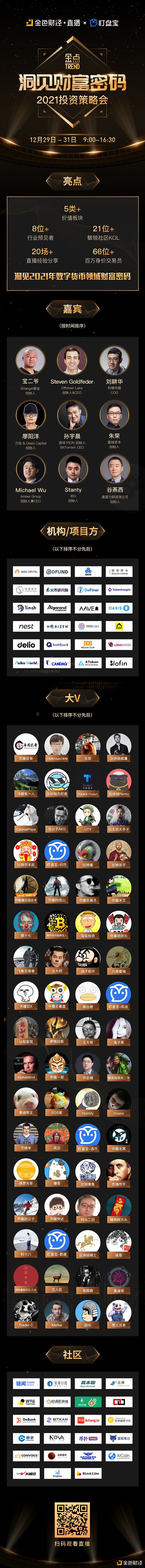 En 2020, un año de grandes cambios no vistos en un siglo, ¡lo hemos superado con seguridad! ¡vamos! ¡Porcelana! Al cierre de 2020, la presentación anual de Jinse Finance "Insight into the Wealth Code 2021 Investment Strategy Conference" se centra en 5 categorías + sectores de valor, se apoya en los hombros de 8 + previsores de la industria, mira 20 + intercambio de experiencias de transmisión en vivo y se reúne con 21 + KOL de la comunidad Keen, chat grupal con más de 66 millones de comerciantes, información sobre los códigos de riqueza en el campo de la moneda digital en 2021.