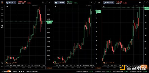 A partir de la tendencia de precios de AAVE y SNX, se encuentra que los dos casi han mantenido un fuerte impulso alcista, especialmente en comparación con la tendencia de precios de Bitcoin. Durante el mismo período, el precio de Bitcoin aumentó de $7200 a $35 000, un aumento de solo 4 veces.
