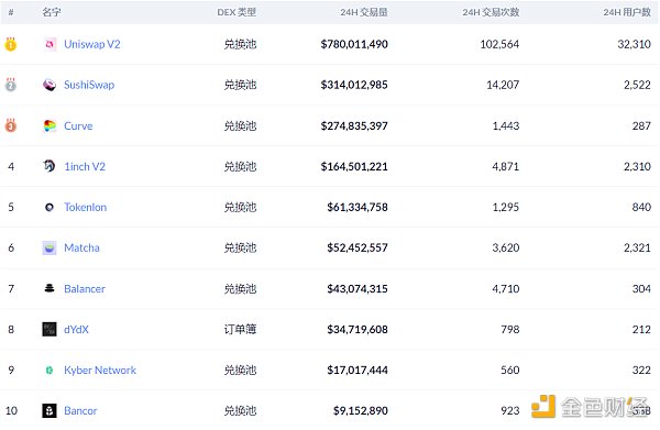 Fuente de datos de los diez principales DEX por volumen de negociación: Debank