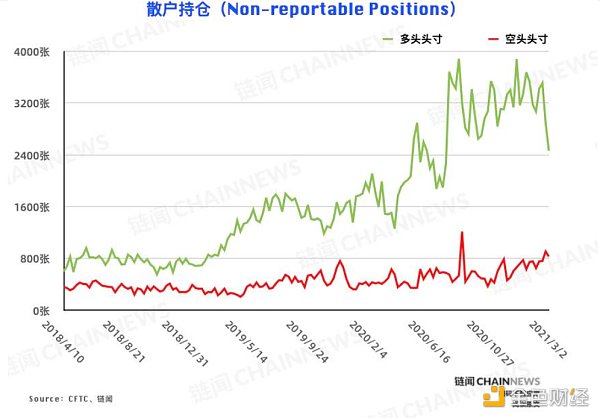 En términos de posiciones minoristas, las posiciones largas cayeron de 2.892 a 2.465, lo que alcanzó un nuevo mínimo en casi 32 semanas, y las posiciones cortas cayeron simultáneamente de 908 a 829. En el último ciclo estadístico, las cuentas minoristas una vez más redujeron significativamente sus posiciones largas y también se vieron obviamente afectadas por los débiles choques posteriores a la fuerte caída, lo que generó cierto pánico sobre la posibilidad de que las perspectivas del mercado tocaran fondo.